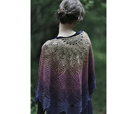 The shawl is named for the forest of Arthurian legend, also known as Brocéliande, and translates elements from Niebling’s lace into a wearable format.
