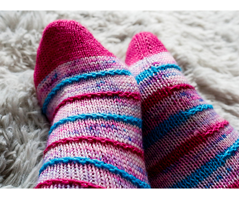 We’ve written this sock pattern for the magic loop knitting method in mind. However, you can also work on double-pointed needles or mini-circulars instead if you prefer (just use extra markers to denote the placement of the heel or toe shaping).