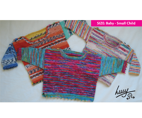 An easy-fit, easy-knit sweater with button-shoulders for a baby or toddler. Knit it out of machine-washable yarn, and it will become a treasured garment!