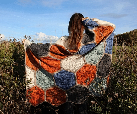 Some projects feel like a patchwork of memories—tiny moments, one by one, coming together into something warm and lasting. Made of Moments is just that: a cozy blanket made from individually knit hexagons, each one a little gem of its own.