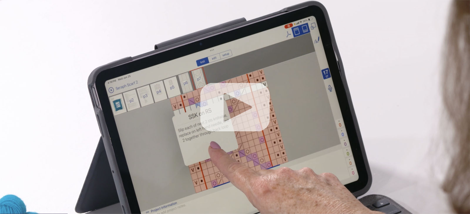 • We have also created a new format called kCDesign. The kCDesign is preconfigured by our team. Their work makes the pattern fully interactive on your device: sizes are selected, instructions are set with a one-tap marker, reminders added, and more. Plus when you use a kCDesign you have access to all the edit tools like Magic Markers and the ability to customize your project settings without a subscription.